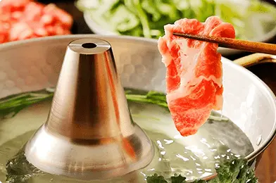 脂の旨さを堪能できる北島ワインポークのバラ肉。ワイン由来のまろやかな風味とサラッとした脂が、しゃぶしゃぶの出汁に深いコクを与えます。口当たりの良い上品な脂が後味まで美味しい一品です。